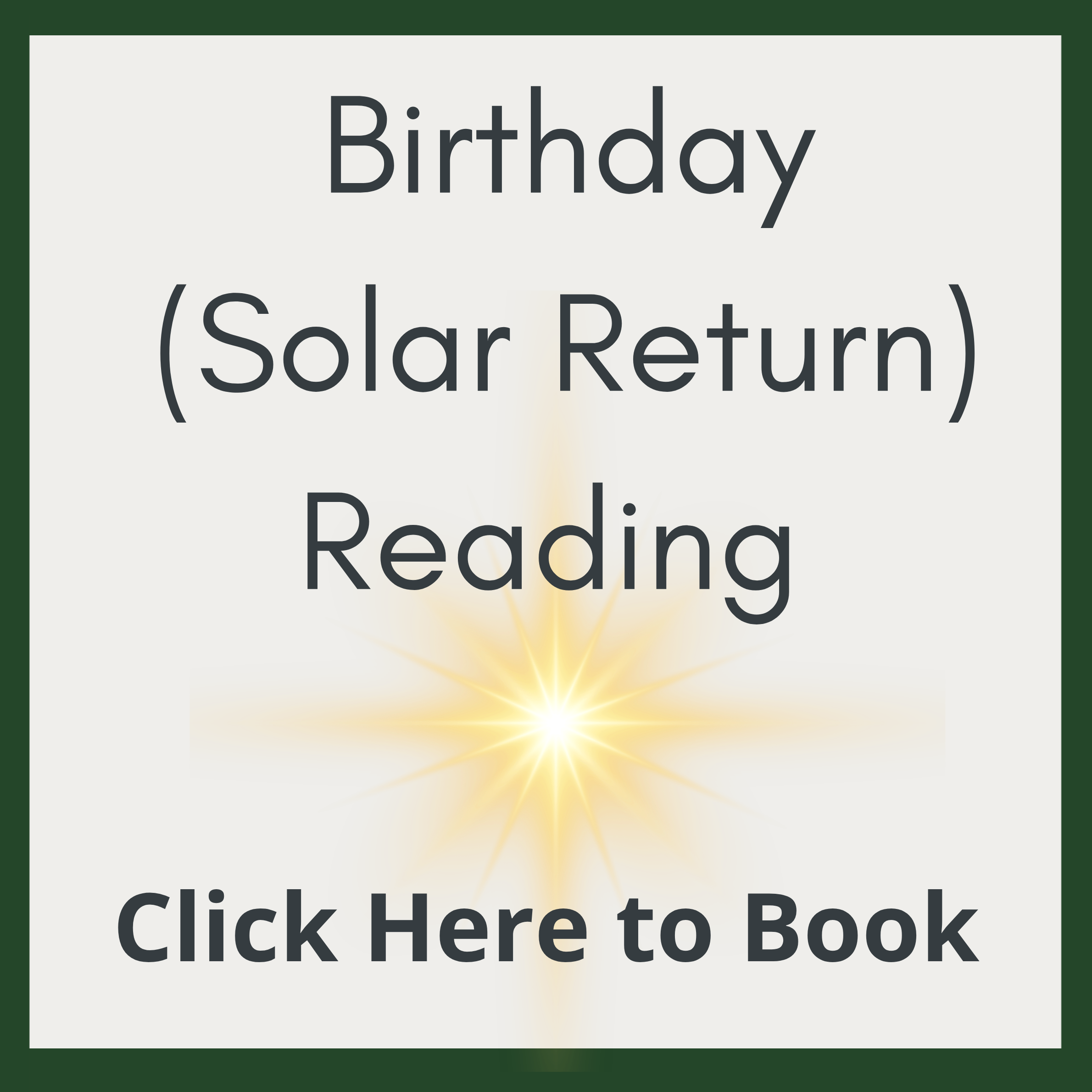 In astrology, your birthday marks the start of your personal new year, as indicated by your Solar Return Chart, revealing upcoming themes for the year ahead. It's ideal to get a Solar Return Reading before your birthday to harness the "celebration moment" when your Sun returns to its birth position, allowing you to create a sacred space for calling in wealth and happiness… but also it’s totally fine to get a solar return reading after your birthday has passed because being aware of yearly themes holds tremendous value at any point in the year.