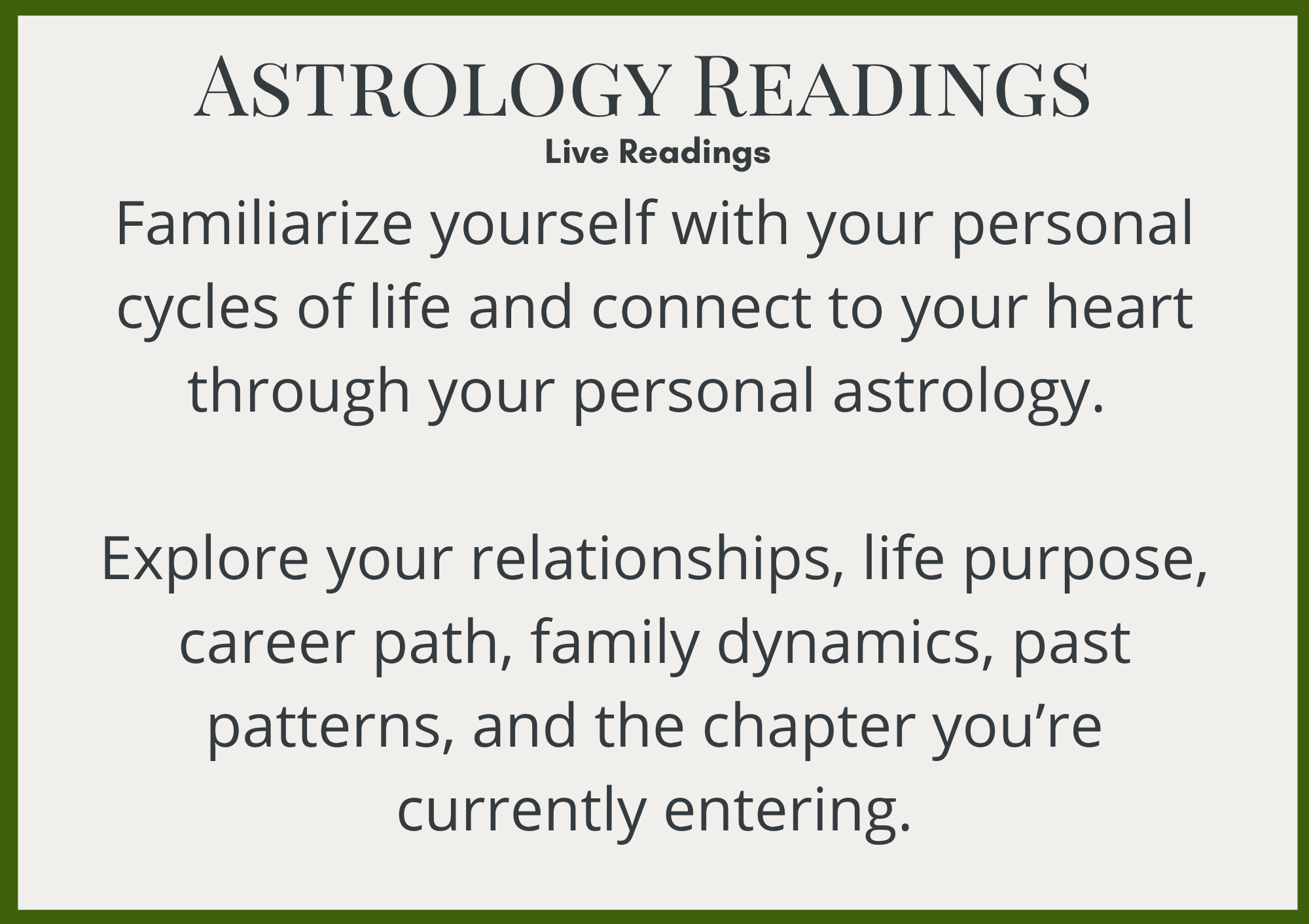 Many people seek an astrology reading to have fun and learn something new. It should be noted that not everyone is willing to open up and reveal their emotions and life stories. They want to hear the light-hearted descriptions of what the signs and planets in their chart mean. If that's you - great! While my readings are more of comprehensive exploration, there are many astrologers who focus on the fun, light, novel aspects of astrology. If you’re on the fence, contact me first.